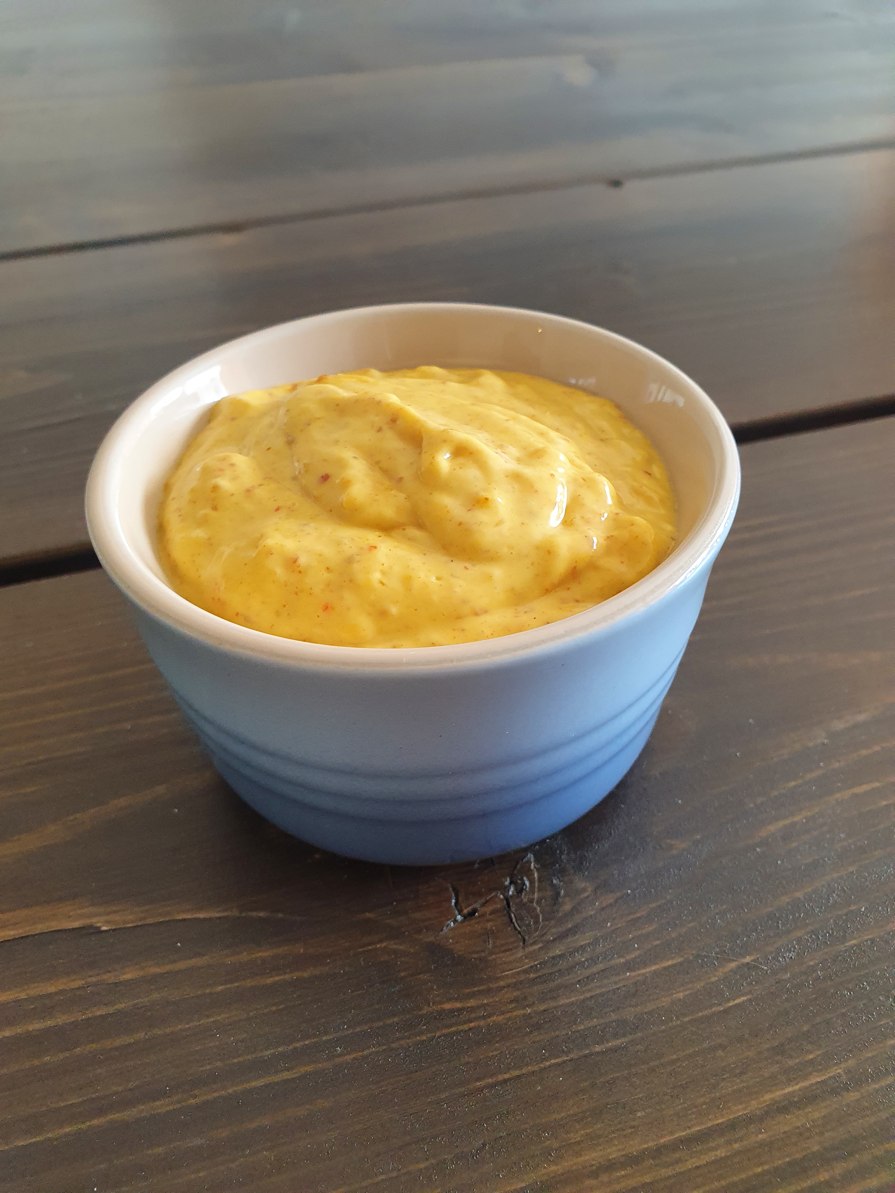 En vanlig majonäs som jag använder hela ägget i stället för bara gula, mest för att jag bara behöver använda ett ägg och slipper tänka på vad jag ska göra med vitan som blir över. En enkel majonäs kan man använda till hur många olika såser som helst, alla kalla såser som man köper i…