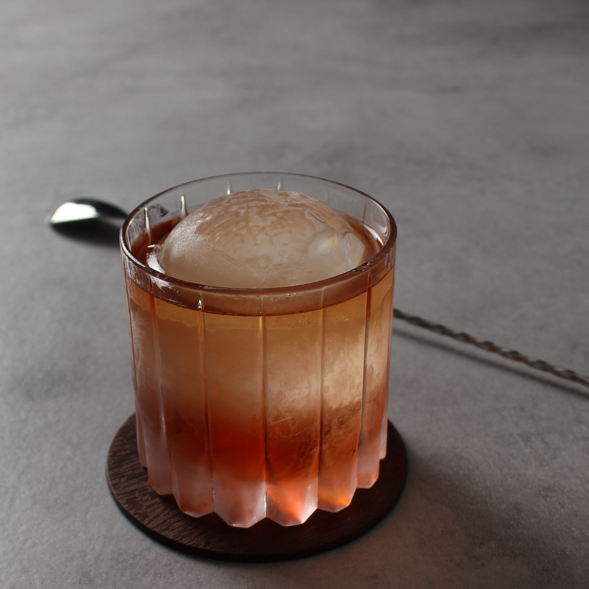 - Sila upp drinken i ett glas med en stor isbit.